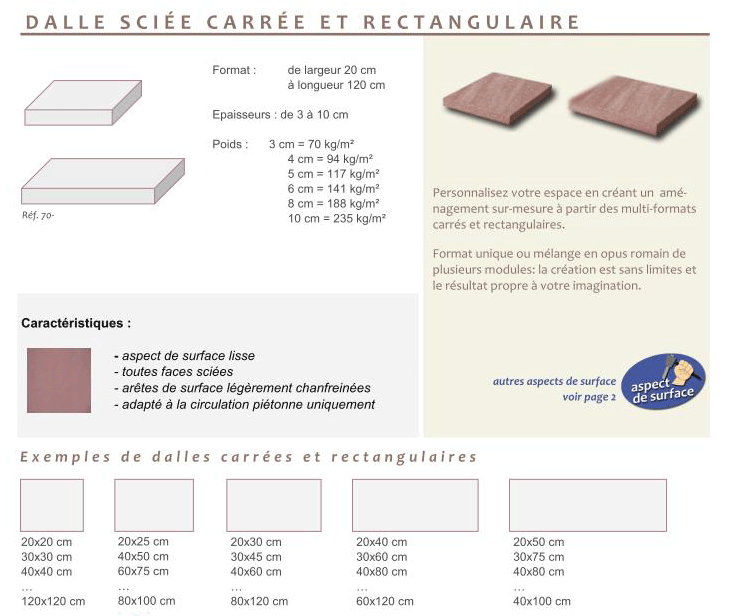 Ci-dessus à gauche : dallage en opus romain, à droite : dallage effet parquet (bande de largeur 25 cm, longueur irrégulère)